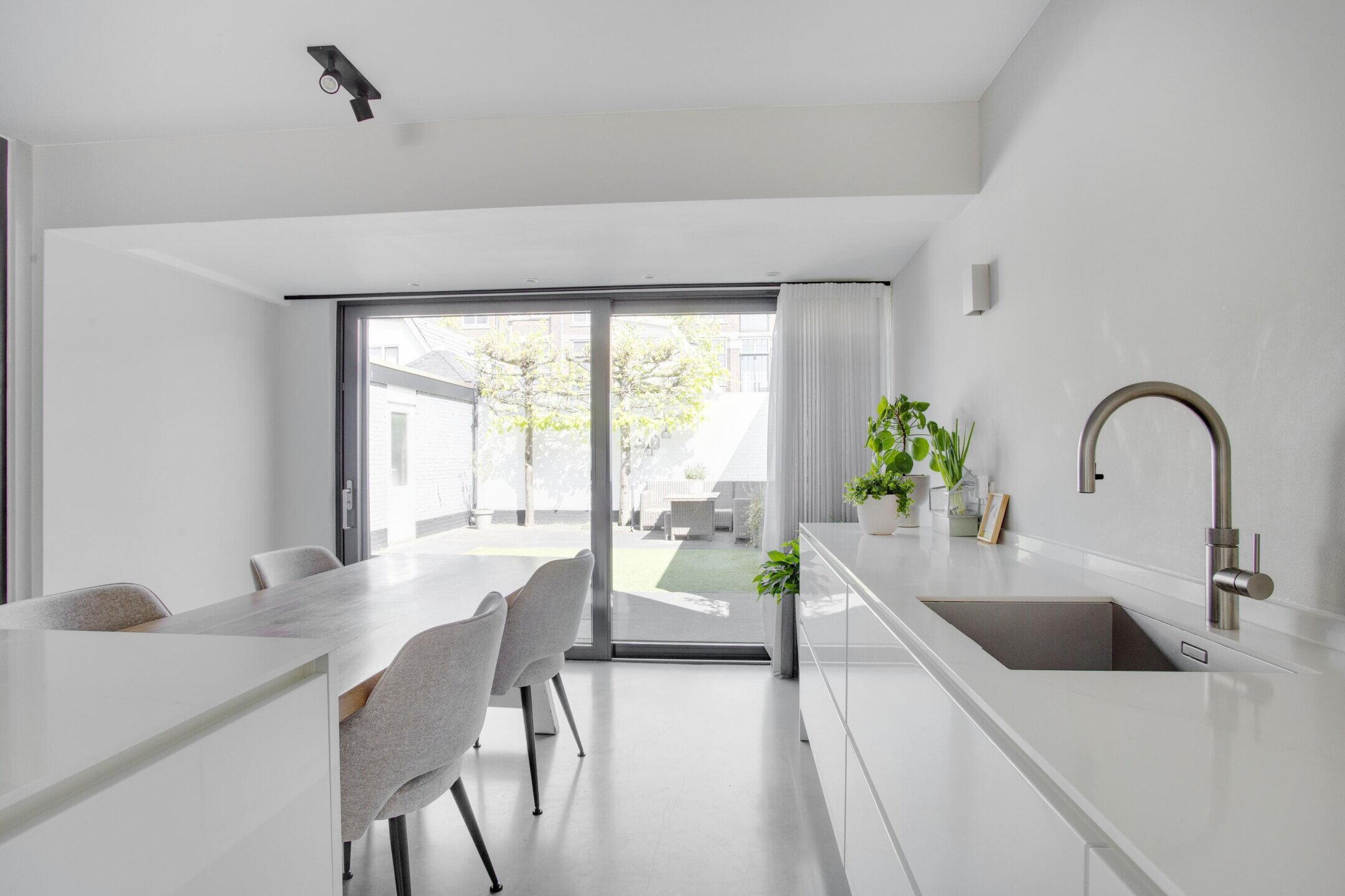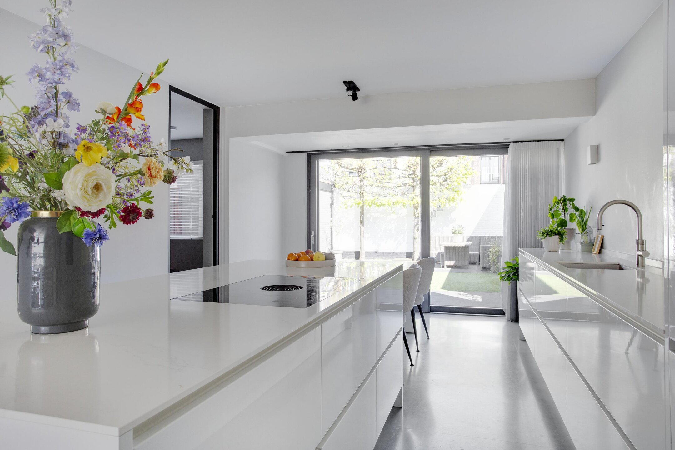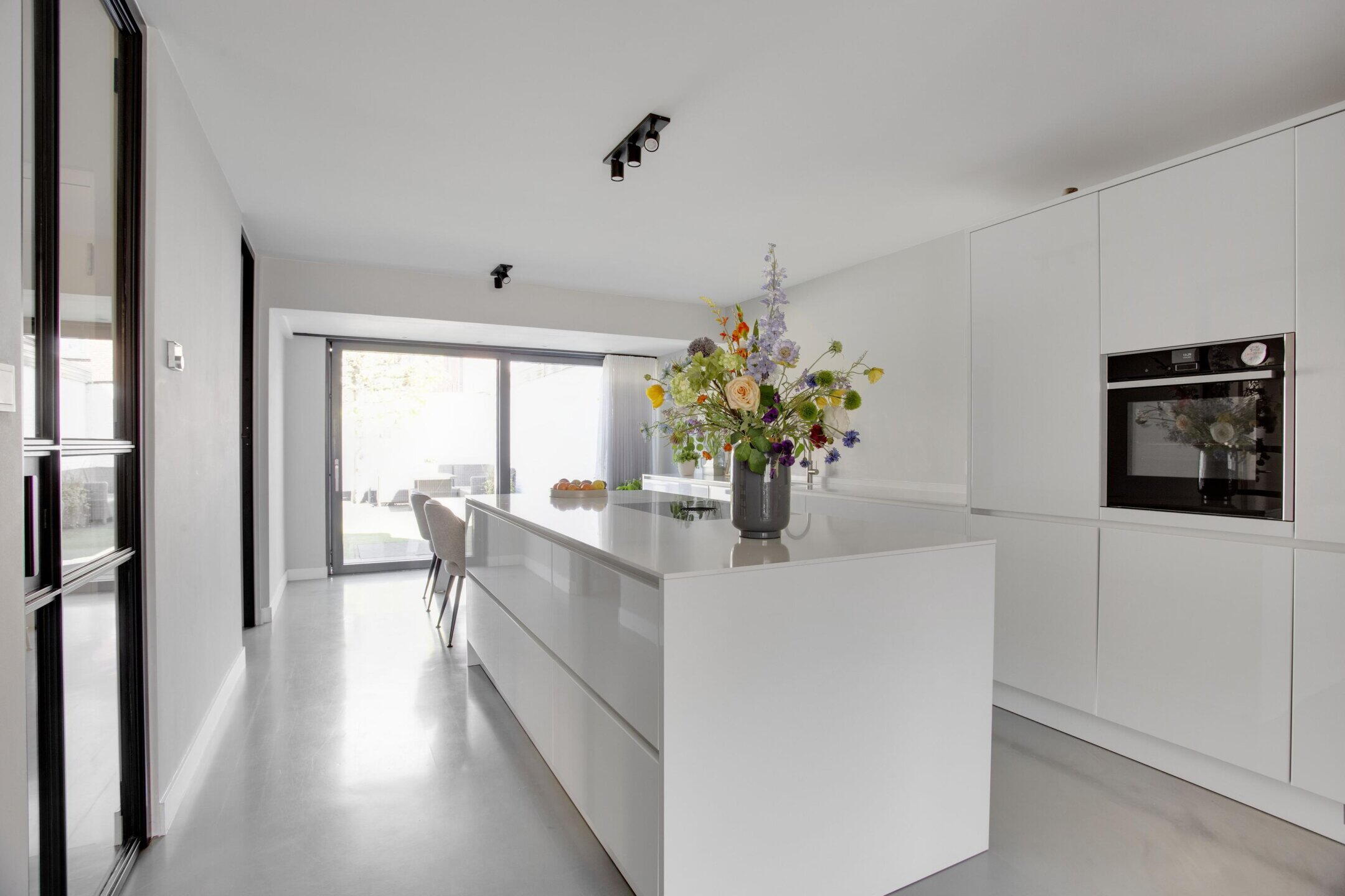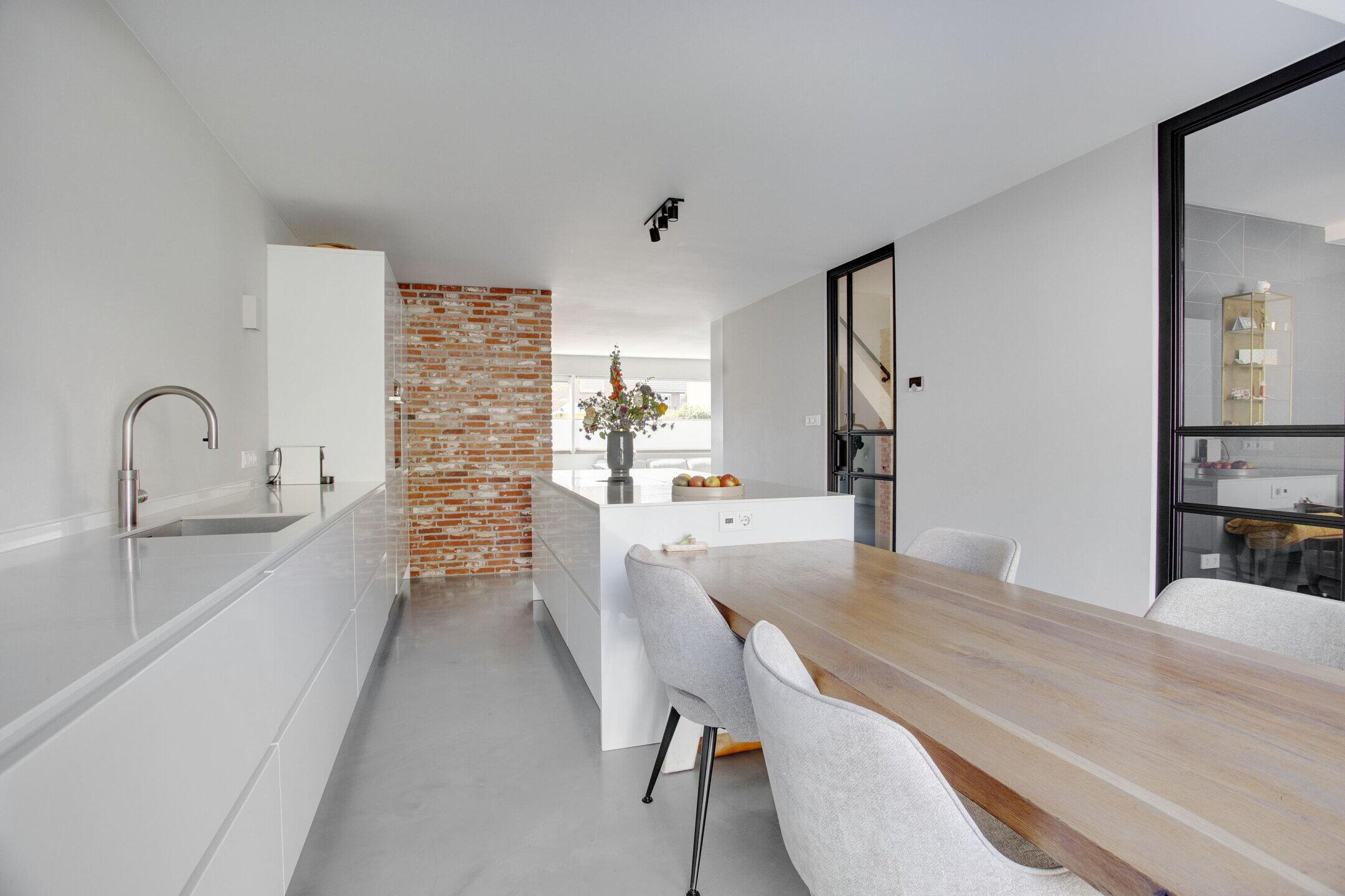 De keuken is in 2020 vernieuwd en ingericht met een kookeiland waar koken en samenzijn centraal staan. De geïntegreerde Bora-afzuiging in de kookplaat en de verrassend grote hoeveelheid kastruimte maken de keuken zowel praktisch als stijlvol. Aangrenzend bevindt zich de eettafel, van waaruit u overzicht heeft richting de tuin, de speelkamer en de woonkamer. Terwijl u kookt, heeft u volledig zicht op alles wat zich om u heen afspeelt, precies zoals u dat mag verwachten van een woning waarin het dagelijks leven samenkomt.