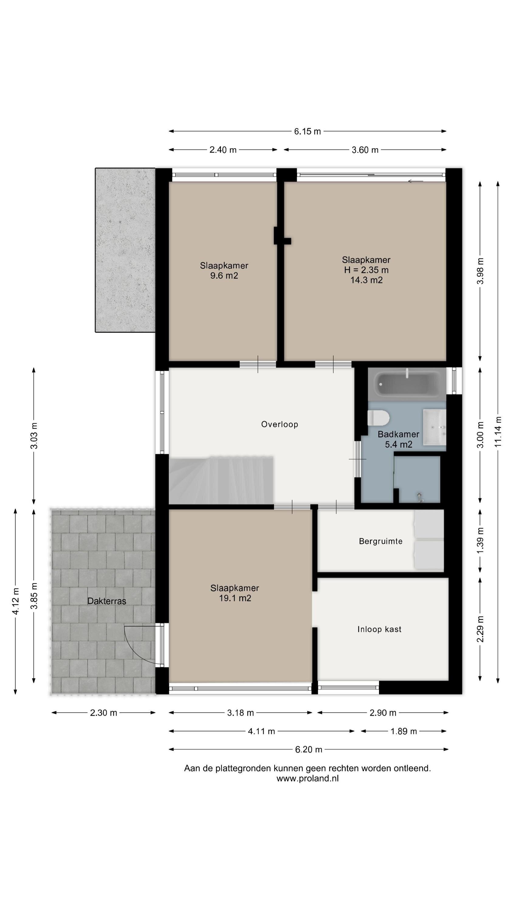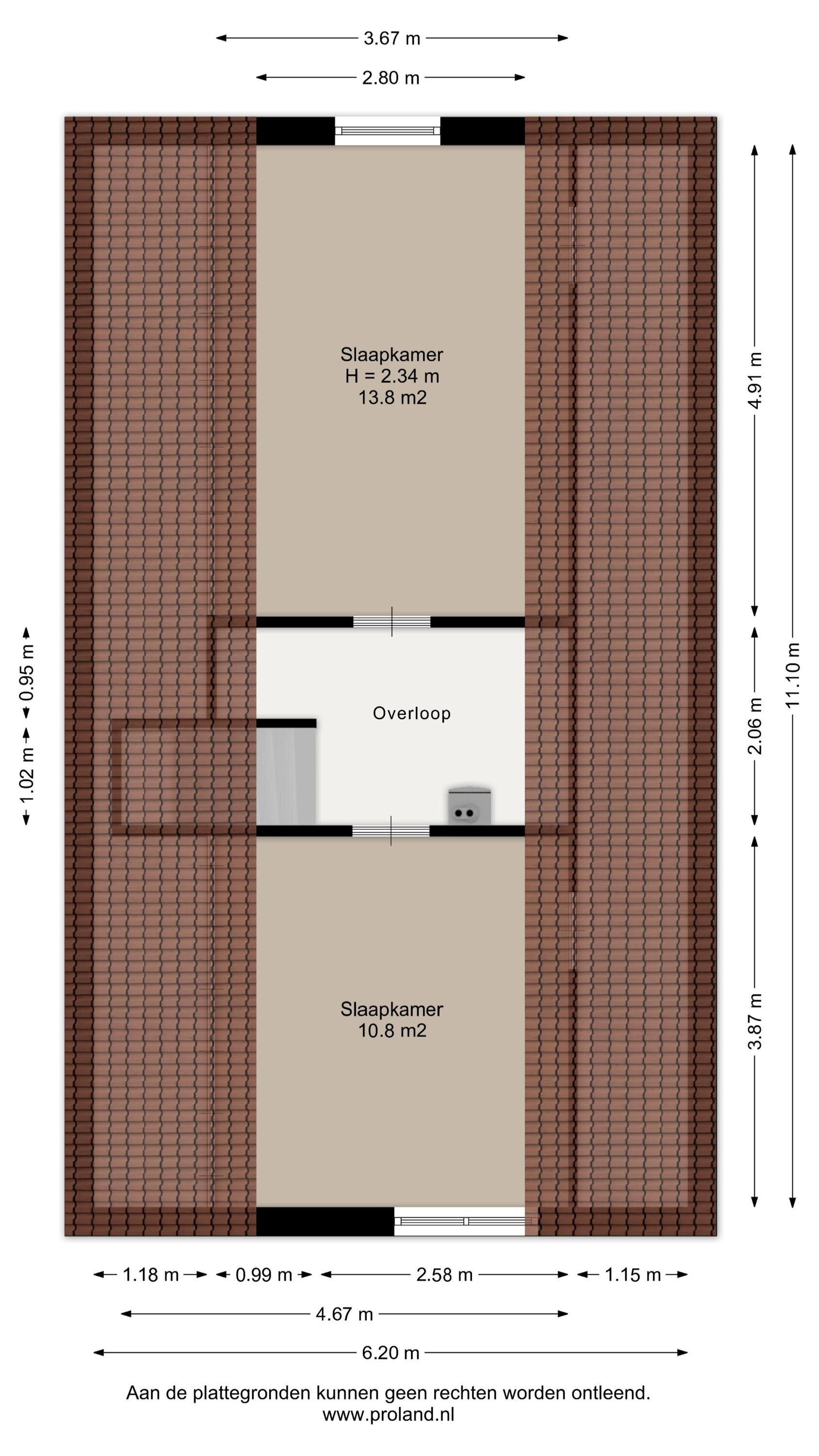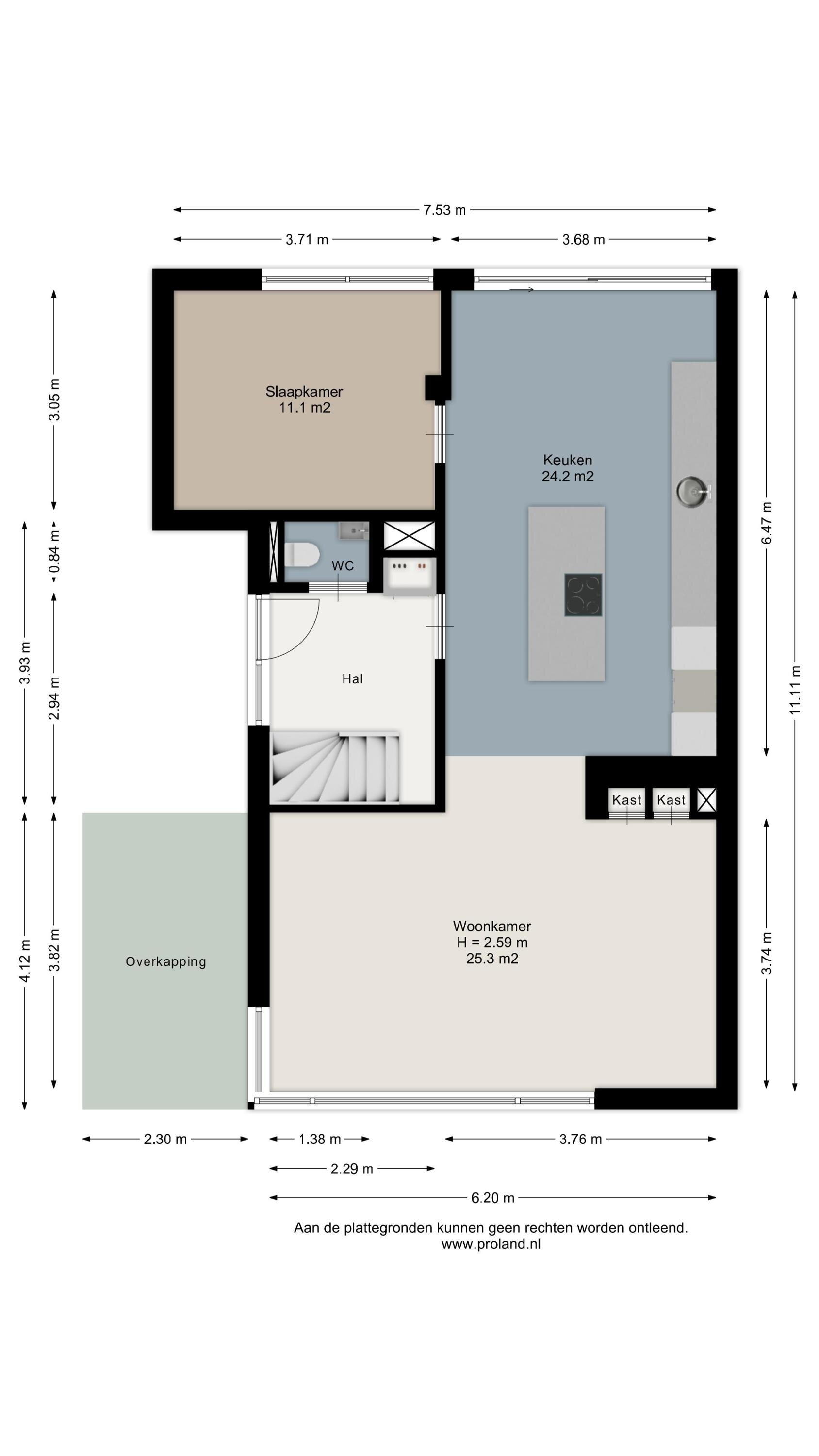 - 46 m² (7.05 meter diep en 6.5 meter breed)